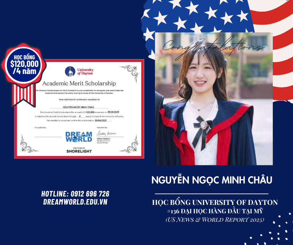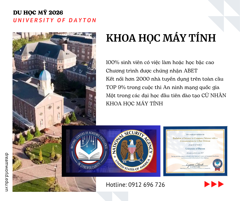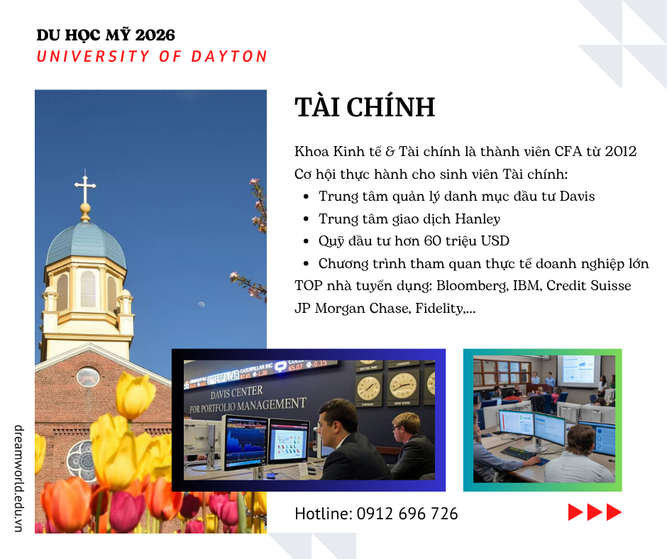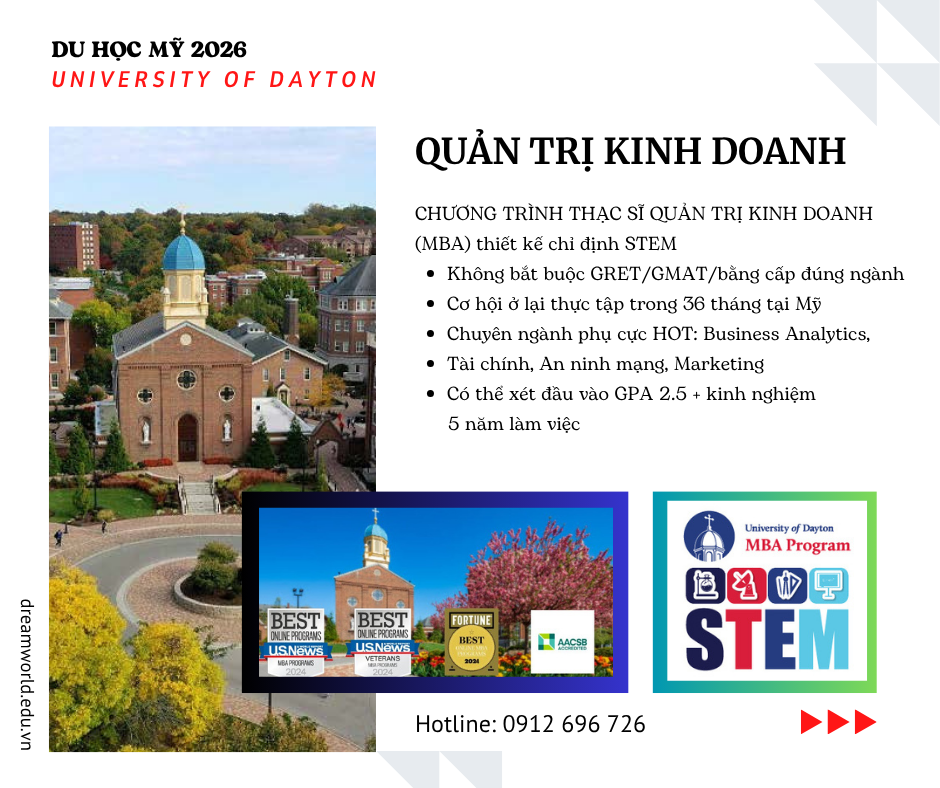 HỌC BỔNG MỚI NHẤT TỚI HƠN 3.6 TỶ ĐỒNG NĂM 2026 TỪ UNIVERSITY OF DAYTON, trường nổi tiếng với các ngành khối Kinh doanh, Tài chính, Công nghệ, Kỹ thuật tại Mỹ.