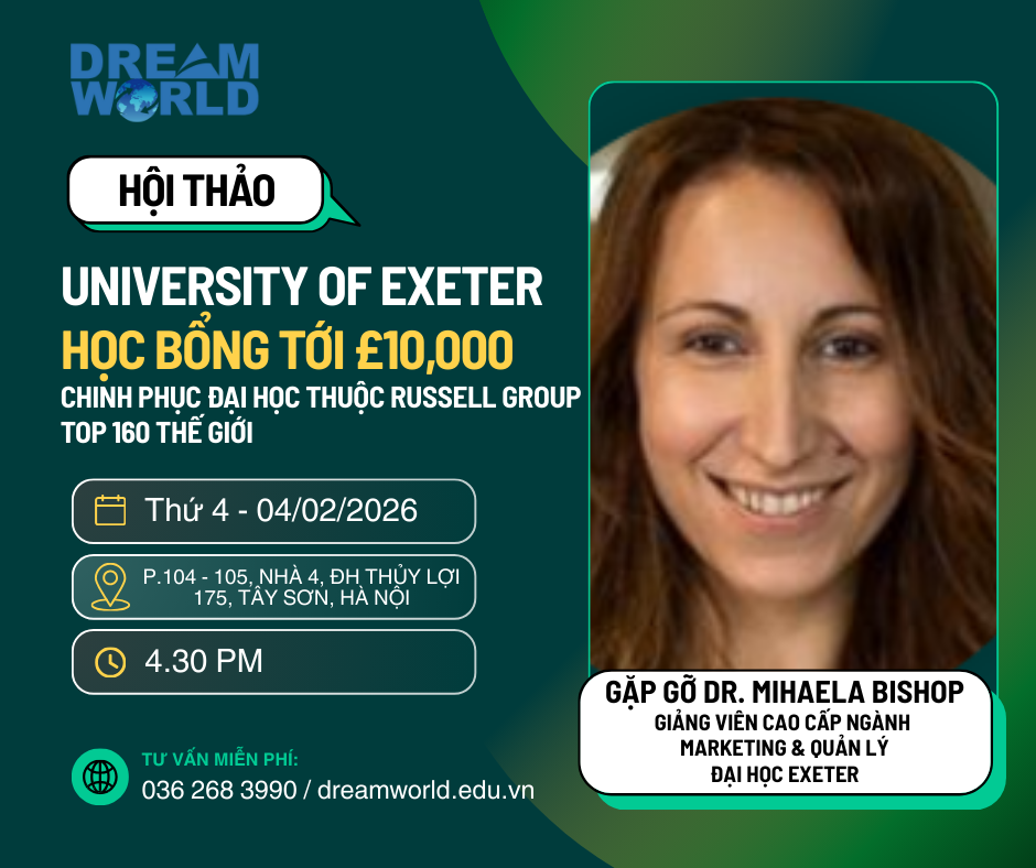 • Tư vấn trực tiếp cùng Tiến sĩ Mihaela về ngành học phù hợp và chinh phục học bổng tới 10,000GBP tại University of Exeter