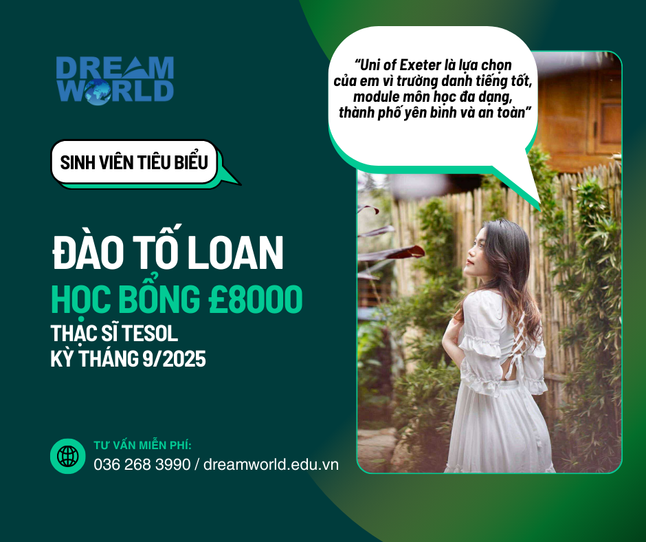 • Học bổng Vietnam Postgraduate Taught Automatic Scholarship 2026 trị giá: £8000 (xét tự động - không yêu cầu hồ sơ học bổng riêng)