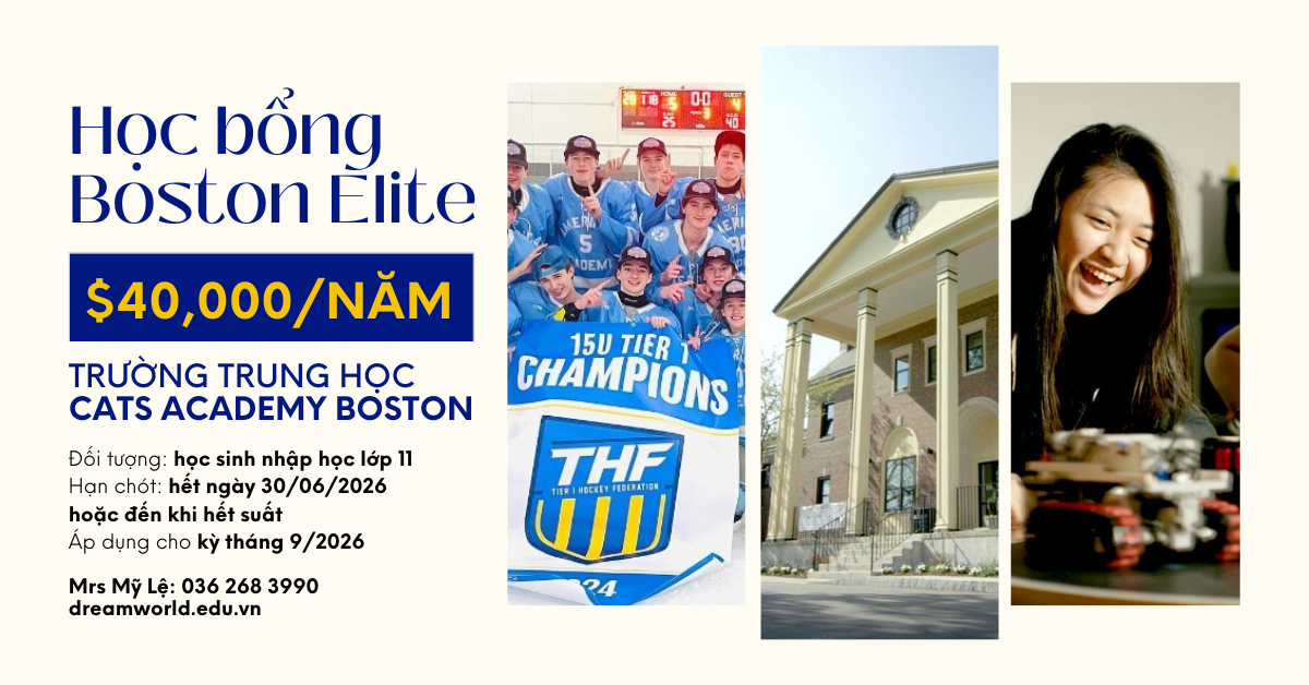 HỌC BỔNG BOSTON ELITE 1 TỶ / NĂM TỪ TRƯỜNG PHỔ THÔNG CATS ACADEMY BOSTON, MỸ
