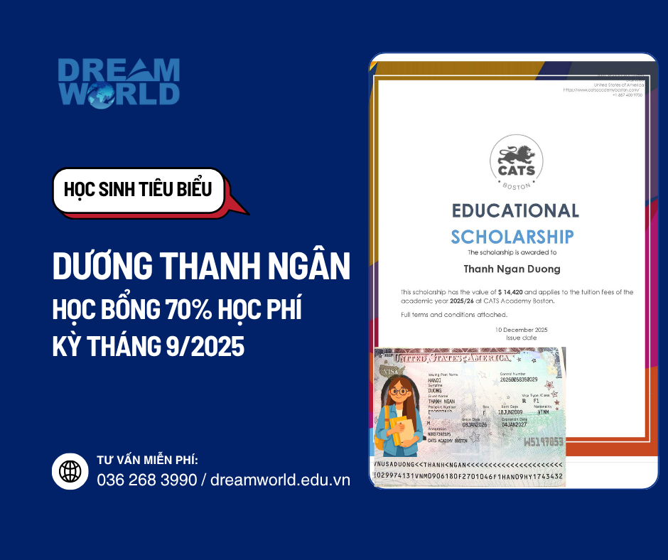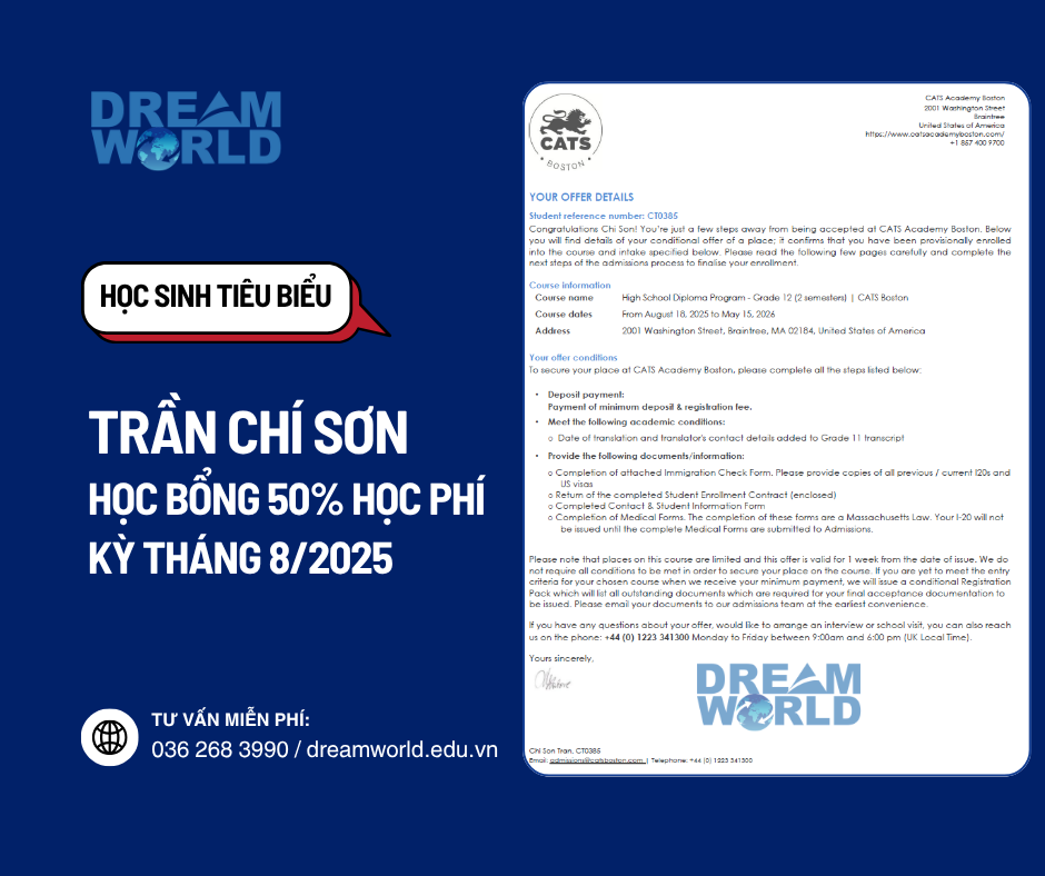 Với chính sách học bổng cực lớn cho năm 2026, CATS Boston chào đón các học sinh có thành tích nổi bật, sẵn sàng đóng góp cho cộng đồng và thể hiện tố chất học sinh "IVY" bản lĩnh, xuất sắc, năng động.