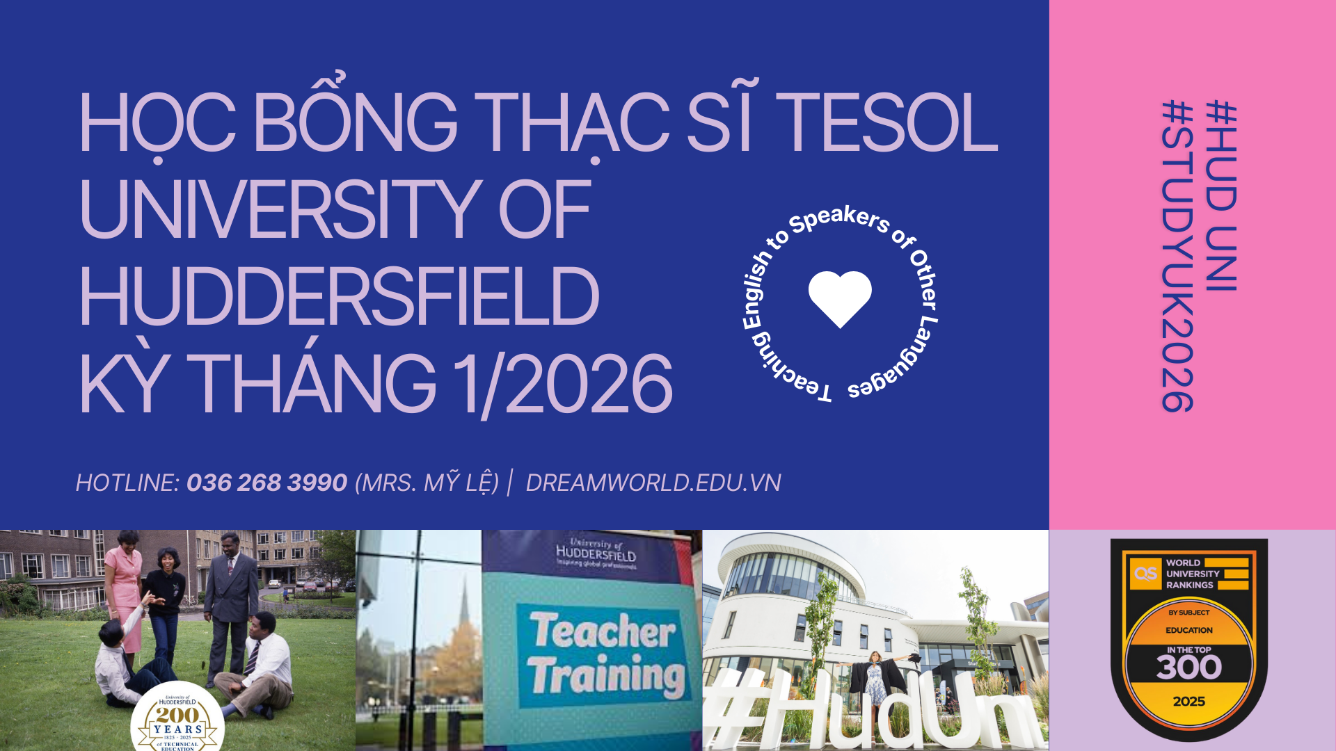 Với học phí sau học bổng chỉ khoảng £14,700 trong thời lượng 1 năm, và chất lượng đào tạo đẳng cấp thế giới, Huddersfield hứa hẹn tiếp tục là lựa chọn số 1 cho sinh viên TESOL kỳ tháng 1/2026.